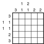 | 16:45, 14. Okt. 2011 | Nonogramm-schlangen-A.eps (Datei) | 2 KB | Berni | Nach der Vorlage der Quali zu LM 2007 selbst erstellt. | 1 | |