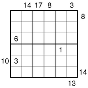 | 09:53, 27. Apr. 2014 | X-Summen-Sudoku-A.eps (Datei) | 3 KB | Berni | Nach einer Vorlage von Silke Berendes selbst erstellt. | 1 | |